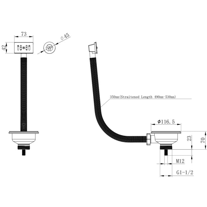 This pack includes Kitchen Sink Waste with colour coordinated overflow covers (2 options - round or rectangle), please see technical drawing for dimensions