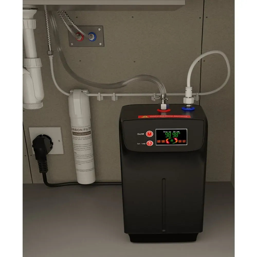 The Ellsi 3 in 1 Boiling Hot Water Kitchen Sink Mixer Tap features a high-quality Chrome finish and dispenses both standard hot & cold water as well as filtered boiling hot water. Good design often means as little design as possible - paring down to only the essential elements required to achieve the desired effect. The principle of ‘simplicity by design’ is that a good design solution is the most simple solution to the design problem. Ellsi products deliver great results and look great by simply adhering to this principle. The Instant Boiler Tap is functional, easy to use, fit and maintain. It comes complete with an easy to replace the carbon filter. The filter comes complete with fixtures and fittings and when ready for replacing it takes seconds: just a quick twist, pull & replace.