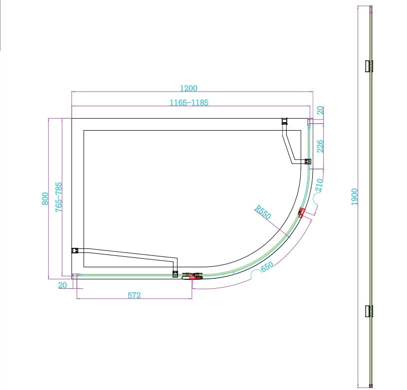 - Adjustment (mm): 1165/1185 x 765/785