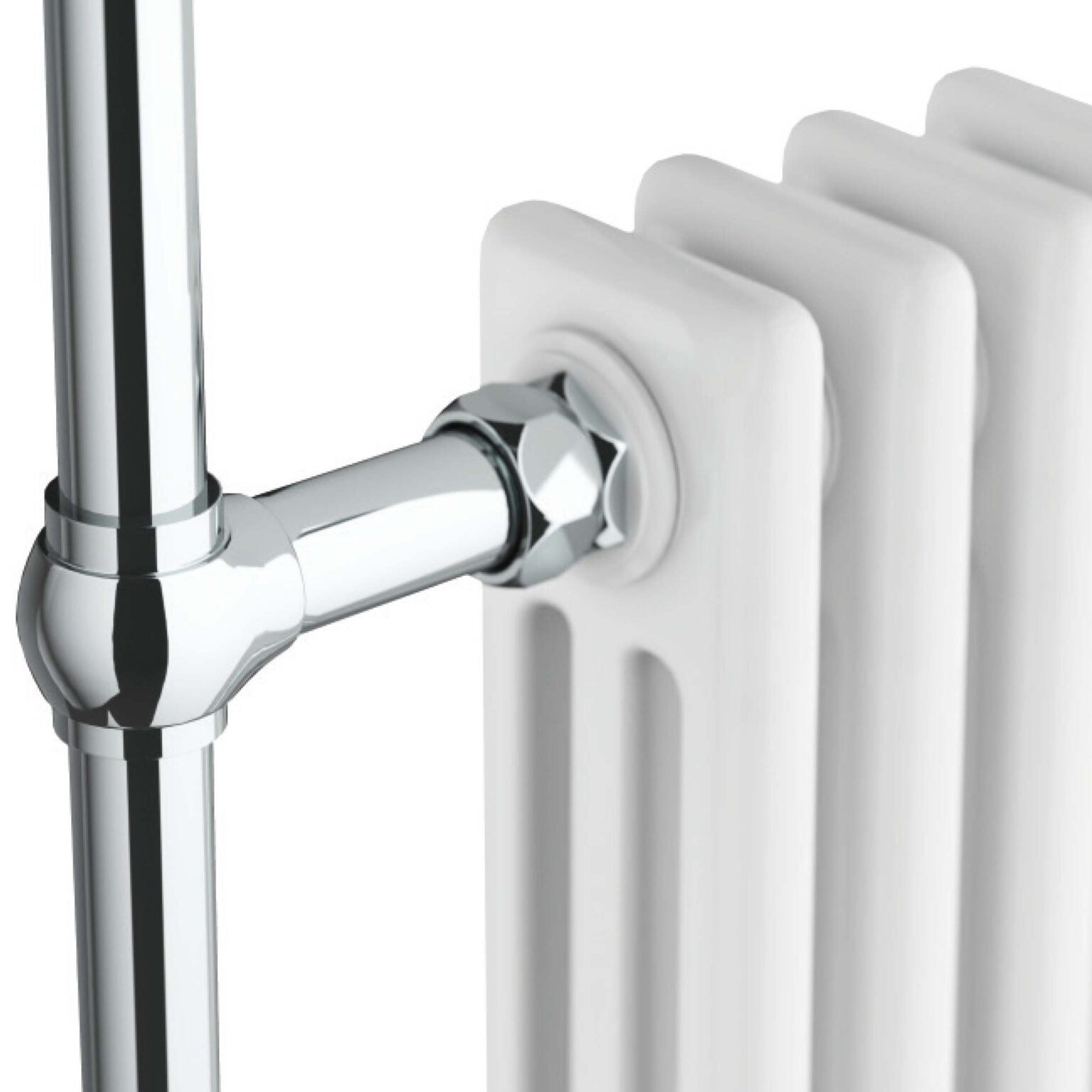 This Knaresborough 4 Column Radiator from our Traditional Range has a classy, bright and eye catching design ideal for any traditional bathroom. With a chrome finish and a white column radiator, this Ilkley Towel Warmer is guaranteed to be the talking point of your bathroom or cloakroom.