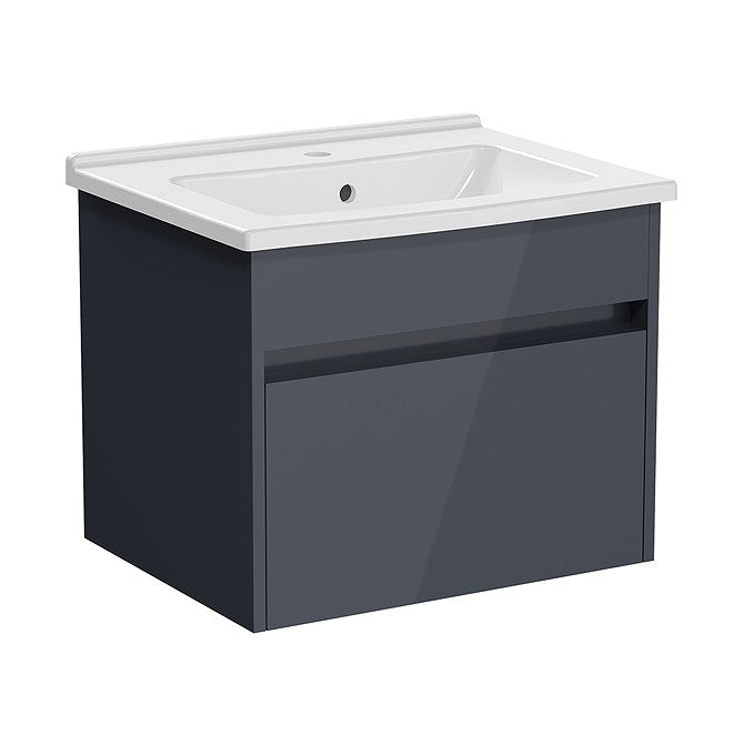 VitrA S50 Gloss Anthracite High Gloss 600mm Wall Hung 1-Drawer Vanity Unit inc Basin
